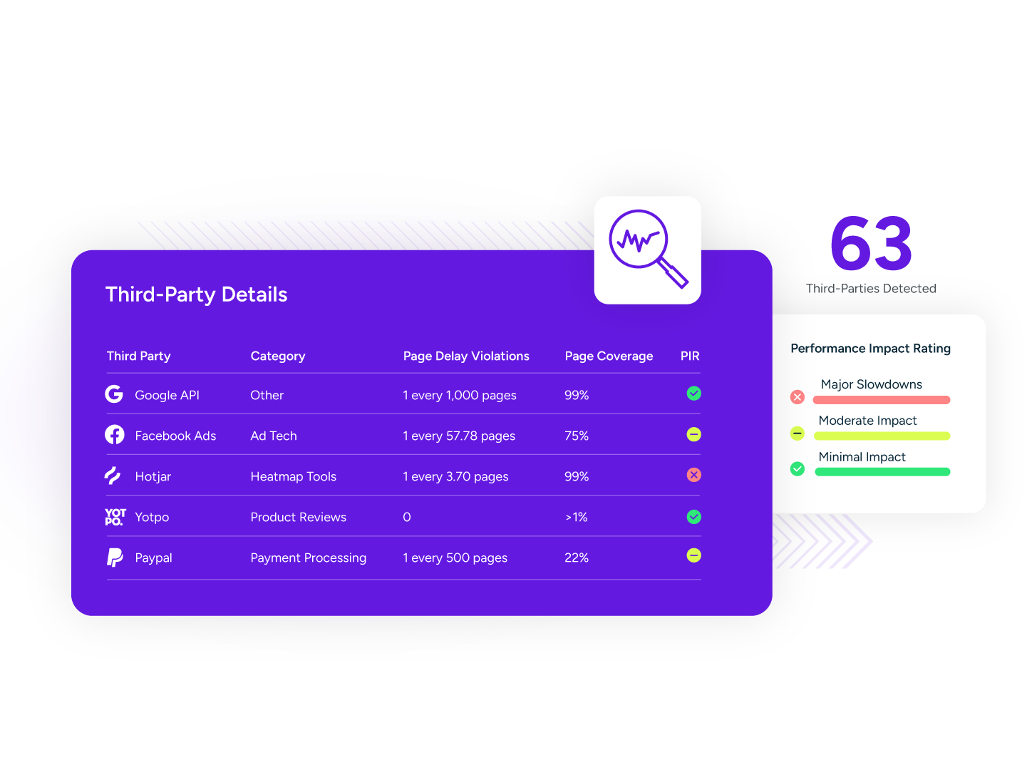 From real user monitoring and JavaScript error tracking to third-party tag audits, Yottaa shows you how shoppers experience your site in granular detail. Layer in competitive benchmarking and synthetic monitoring from our expert performance team, plus always-on detection for outages and security threats, giving you the real-time visibility and long-term context to protect your site and improve performance.
